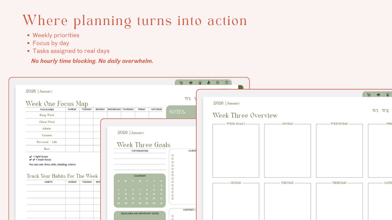 - Weekly execution planning that still holds you accountable